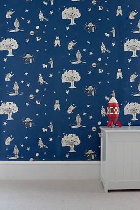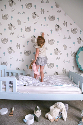 Storytelling — слово, которое можно найти в любой англоязычной книге о детском развитии и воспитании — то, что будит детскую фантазию, заставляет думать и придумывать. Именно этого эффекта, помимо запоминающихся рисунков и красивой цветовой гаммы британская художница Кэти Борн (Katie Bourne) старается добиваться от каждого из дизайнов обоев, вошедших в ее удивительную коллекцию для малышей.