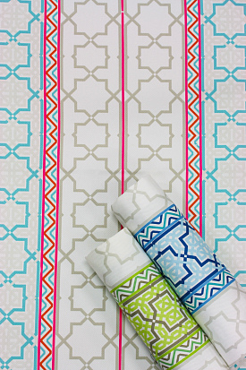 Принты с комбинацией белого и голубого напоминают нам о греческих островах, похожие на восточные тканые одеяла рисунки переносят в сказочный Танжер, а геометрические узоры рассказывают о турецких коврах. На создание оригинальных рисунков Ричарада Смитта вдохновляли традиционные азербайджанские килимы XIX века, характерная для Северной Африки и арабской культуры орнаменталистика.