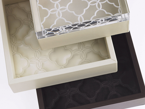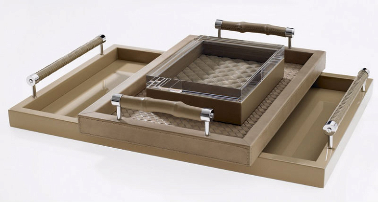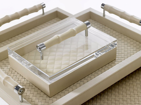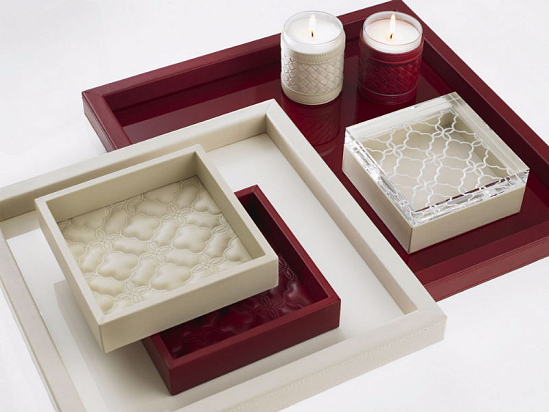 Все коллекции компании выполнены с большой любовью к красоте. Аксессуары Riviere создаются вручную из самых ценных материалов: роскошной кожи, рога, макасарского эбенового дерева в необычных сочетаниях с парусиной, бамбуком, хромом и акрилом. Одна из характерных стилевых особенностей Riviere –"шахматное" плетение тончайшей кожи, которое придает особое благородство и элегантность любым аксессуарам – от ваз до подсвечников.