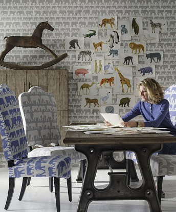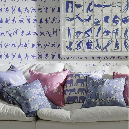 Представляем вам коллекцию Холли Фрин (Holly Frean). В основу этих оригинальных обоев и тканей легли знаменитые рисунки животных британской художницы. Ткани изо льна и хлопка с нанесенными цифровым способом иллюстрациями созданы таким образом, что отлично сочетаются друг с другом и создают в интерьере детской комнаты удивительный мир, где живут танцующие обезьяны, слоны и медведи.