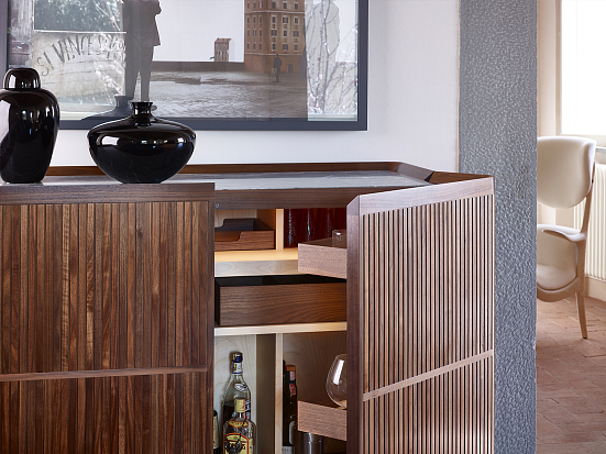 Ее стиль – эффектность, оригинальность и функциональность. Все предметы коллекций Ceccotti Collezioni изготавливаются вручную из твердых пород древесины, чаще всего используются дуб, венге и орех, кожа особой выделки, благородный металл.