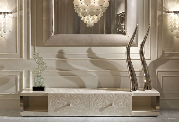 С момента своего основания в 1950-м году итальянская фабрика Cornelio Cappellini, вдохновляясь красотой дворцовых интерьеров XVIII века, создает мебель для ценителей роскоши и исторического стиля. В производстве используют различные породы дерева, даже экзотические и редкие, для декора — помимо традиционных (дорогого текстиля и кожи) материалы нехарактерные для мебельного дизайна. В последнее время художники Cornelio Cappellini декорируют предметы натуральным мехом, различными кристаллами и драгоценными камнями. В ассортименте бренда мебель для гостиных, столовых, библиотек, прихожих и спален. Познакомиться с каталогами фабрики можно в Москве в салоне Deluxe Home Creation на Б. Грузинской, 42.