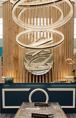 Английский бренд Baroncelli был основан в 1994 году. Прежде всего компания известна в мире интерьерного дизайна, как производитель оригинальных светильников. Мастерам и дизайнерам Baroncelli удивительным образом удается объединять в своих произведениях искусство и новейшие технологии. Необычные по своей форме светильники Baroncelli — многоуровневые люстры, стройные торшеры и элегантные бра, способны создать в интерьере правильное освещение и сказочную атмосферу. Благодаря экстравагантному дизайну и филигранной работе мастеров, уникальные предметы Baroncelli известны во многих странах и неоднократно получали награды на выставках. Одна из известных коллекций бренда называется Flexus. Именно она легла в основу биеннале Roma Phantasma в Доме Перони в Лондоне. Джованни Коррадо, креативный директор Baroncelli, наряду с другими талантливыми художниками, был приглашён для создания экспозиции, темой которой стал Рим — то самое место, где родился чудесный напиток Peroni Nasstro Azzuro.
