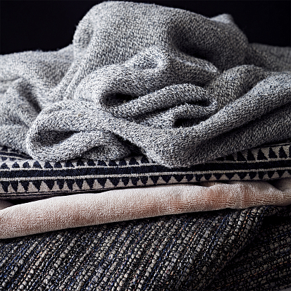 Помимо тканей компания de Le Cuona выпускает прекрасные коллекции аксессуаров для дома. Особенной популярностью пользуются подушки из шелкового бархата, отороченные мягкой замшей и декорированными пуговицами с металлической вышивкой, а также мягчайшие кашемировые пледы и покрывала.