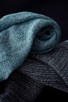 На основе классической техники прядения шелка Берни де Ле Куона изобрела свой собственный, уникальный способ производства льна. На изготовление трех метров материала уходит целый день работы на ткацком станке. Ткань получается чрезвычайно тонкая и прочная, а фактура льна благодаря мягкой и шелковистой текстуре становится практически не распознаваемой. Еще одна уникальная техника выработки льна от de Le Cuona называется «Stone Wash». Этот метод позволяет воссоздать на ткани шероховатости, эффект выцветшей краски, достичь приглушенных сдержанных цветов и благородных оттенков. Кашемировые и шерстяные коллекции de Le Cuona, для создания которых Берни тщательно изучает в Кашмире технологии ручного производства и окраски текстиля, представлены однотонными тканями и знаменитыми рисунками Paisley.