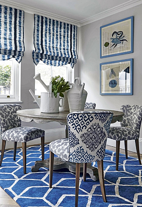Коллекции текстиля и обоев William Yeoward почти 20 лет выпускаются совместно с компанией Designers Guild. Начало работы с Тришей Гилд стало для Уильяма Йоварда пробой найти себя в чем-то новом. В тот момент его основным увлечением было поиск, восстановление антиквариата и старинных предметов. Сегодня создание интерьерного текстиля и обоев стало ключевым направлением творчества. Новые дизайны и переосмысленные архивные — основа его коллекций. Замысловатые узоры и их оригинальные сочетания, сложные оттенки, из которых синий самый любимый, бархат с рисунками, базовые фактурные обивки — все эти ткани и обои дизайнер превосходно комбинирует в интерьерах. «Мне нравится смешивать антикварные и современные вещи. В том, как я это делаю, и проявляется мой индивидуальный стиль», — так Йовард охарактеризовал свой основной прием в интервью одному из интерьерных журналов.