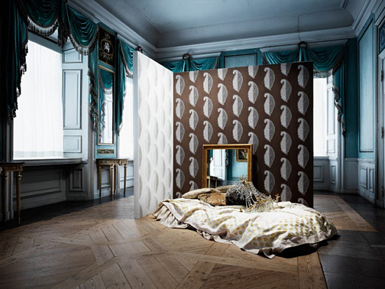 Знаменитый кристальный бренд предложил для роскошных интерьеров и уникальную коллекцию обоев, созданных по эскизам британского дизайнера Карен Бошам (Karen Beauchamp). Настенные покрытия с использованием плотного слоя кристаллов Cristal Strata меняют оттенок в зависимости от освящения. Цвета золота и серебра обои Versalles – воплощение романтики старинных зеркал. Прямоугольные панели на них имитируют популярный в XVIII веке эффект эгломизе (verre églomisé), который достигался путем применения особой техники живописи на стекле с использованием золотой и серебряной фольги. Ромбы, страусиные перья, полосы и крученые ленты, украшенные жемчугом и стразами, сверкают на обоях с эффектом металлизированной кожи, кашемира и бархата и погружают в атмосферу роскоши и великолепия XVIII века. В Москве коллекцию можно найти в салоне Deluxe Home Creation на Б. Грузинской 42.