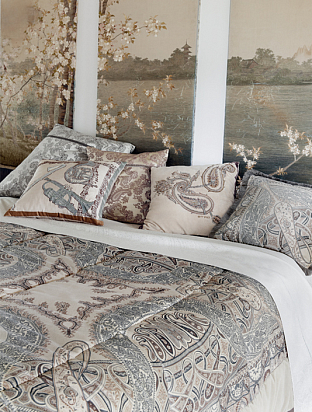 В салоне Deluxe Home Creation появились новинки от Etro - домашние халаты и полотенца, покрывала и пледы из шерсти, ангоры, мохера и кашемира, а также удивительное постельное белье из мягкого и шелковистого на ощупь египетского хлопка. Особенность марки Etro - высочайшее качество тканей, принты с восточными узорами и нестандартные колористические сочетания. Общая тема между последними коллекциями pret-a-porter и линией для дома – цветовая палитра, включающая пастельный бежевый, цвет свежей травы, нежный сиреневый и, конечно, гамму синий-белый-голубой, модный тренд предстоящего сезона.