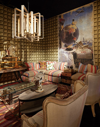 В этом году на интерьерной выставке в Париже Мартин Уоллер представил долгожданную новую коллекцию. Основатель британского бренда Andrew Martin, чей неповторимый стиль стал вдохновением для дизайнеров и декораторов по всему миру, в своей новой коллекции как всегда вышел за рамки правил и предложил по-новому взглянуть на популярный сегодня ар деко. Характерные для стиля 20-х годов прошлого века орнаменты и мотивы, четкие геометрические формы нашли свое воплощение в выполненных в брутальной стилистике предметах из металла, бетона и состаренного дерева. Большой платяной шкаф с узором, напоминающим фонтаны «Метрополиса», передающие движение футуристические люстры, аскетичные по форме светильники, столы, настольные лампы и бра с деталями из бетона, декорированного элементами в духе ар деко – примеры гармоничного сосуществования простоты, максимальной функциональности и декора. Новую коллекцию, которая придется по вкусу публике, интеллектуальной, открытой экспериментам, Мартин Уорллер представил на стенде, оформленном в свойственной ему экстравагантной манере. Предметы, напоминающие об увлечениях и важных событиях, о том, что когда-то было популярно, формировало вкус и сознание, по мнению дизайнера никогда не выходят из моды. Именно они являются важными деталями в интерьере, которые делают его индивидуальным.