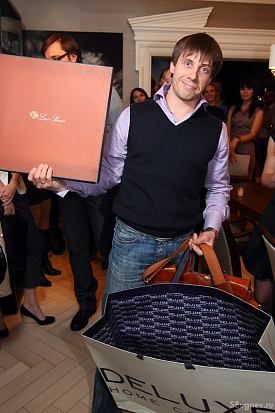 Директор по экспорту Loro Piana Interiors господин Luca Zani, Кирилл Никитенко и директор шоу-рума Donghia Екатерина Сивер устроили для гостей розыгрыш призов – роскошного пледа Loro Piana и одной из фотографий, представленных на выставке.