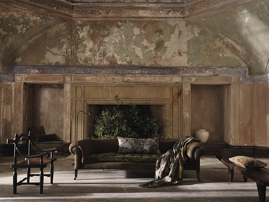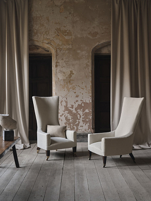 PORTRAIT — ткань с очень необычной структурой, идея которой была навеяна традиционной техникой плетения корзин. Она соткана в Италии из стопроцентной конопли. Её мягкая нейтральная палитра с деликатным включением цвета напоминает об акварельных портретах. Плотная, красиво драпирующаяся ткань Portrait подходит как для портьер, так и для обивки.