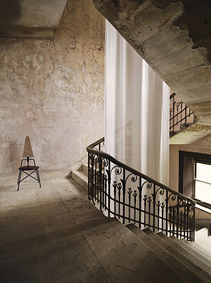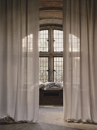 CHANTILLY — полупрозрачный тюль двойной ширины, напоминающий замысловатое кружево. Из тонких льняных волокон изготавливается специальная пряжа с мельчайшими узелками, которые придают этой ткани особую фактуру и динамику. Сотканный в Италии тюль Chantilly чудесно рассеивает свет.