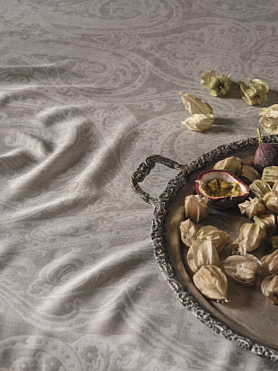 ARIA — необыкновенно мягкий и грациозно струящийся полупрозрачный тюль, сотканный из тончайшей льняной и шёлковой пряжи в Италии. Когда через тюль Aria проходит солнечный свет, изображённый на нём орнамент пэйсли как будто тает в воздухе.