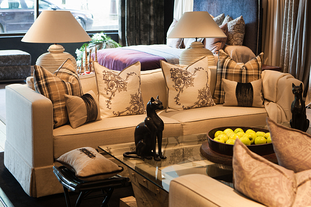 Дорогие гости! В шоу-руме de Le Cuona Вы можете приобрести не только роскошные ткани, мебель и аксессуары, но и выбрать уникальное декоративное решение для Вашего интерьера в квартире или в загородном доме. Наши дизайнеры помогут подобрать эксклюзивное оформление для кровати или дивана, которое подойдет именно Вам, используя продукцию неподражаемой Берни де Ле Куона: льняные, кашемировые и шерстяные коллекции тканей с узором Paisley, подушки из шелкового бархата, отороченные мягкой замшей и декорированные пуговицами с металлической вышивкой, мягчайшие кашемировые пледы, покрывала и разнообразные аксессуары. Ждем Вас в шоуруме de Le Cuona на Смоленской, 7 ежедневно с 11 до 20.