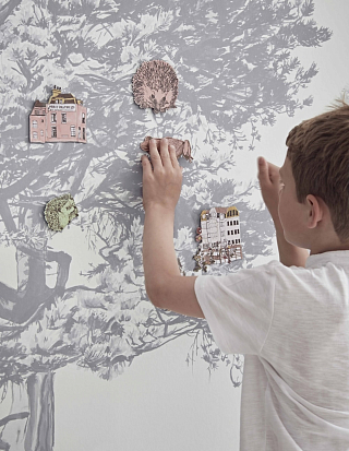 Английская художница Шан Цзэн, закончив лондонский колледж Saint Martins, основала собственную студию. Здесь она придумывает оригинальные коллекции обоев и интерьерных аксессуаров. Большую часть из них она посвящает самым маленьким клиентам. В коллекции волшебных обоев Sian Zeng есть и панно с различными пейзажами, и обои на тему «Парка Юрского Периода» с динозаврами, и нарисованные истории из жизни сказочного леса и его волшебных обитателей.