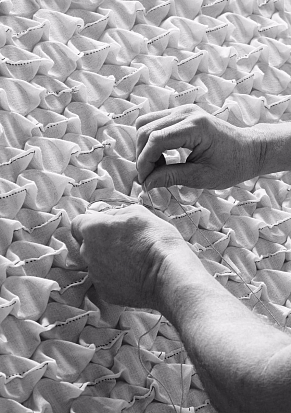 Знаменитые кровати изготавливаются полностью вручную в Англии, в графстве Девоншир, исключительно по индивидуальным заказам с учетом размеров, жесткости матраса, материалов, обивки. Основа каждого матраса – это пружины, расположенные в один, два или три слоя. Сегодня мастера используют 58 типов пружин, что позволяет создавать матрасы с индивидуальным напряжением. Уникальные по своей упругости и пластичности пружины зашиваются в индивидуальные чехлы («кармашки») из натурального коленкора и укладываются в виде блока из сот. Таким образом матрас идеально адаптируется к телу и обеспечивает постоянную поддержку без излишнего давления. Кровати с матрасом Vispring идеально дополняют роскошные изголовья этой марки. К каждому из них можно подобрать элегантную обивку из коллекции текстиля Vispring или любого материала по желанию заказчика. В коллекции бренда большой выбор максимально удобных топперов, подушек и стеганных защитных чехлов.