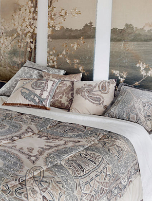 История легендарной итальянской марки Etro начинается с производства эксклюзивного текстиля. Компания была основана в 1968 г., когда Джиммо Этро начал выпускать благородные натуральные ткани с оригинальными орнаментами. В 1981 г. Etro представила миру первую линию тканей для дома.