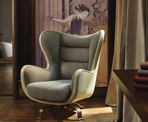 Восток, его тонкости и философия стали вдохновением для создания новой коллекции. Необычайно интригующие предметы, к которым хочется прикасаться и наслаждаться фактурой материалов, и чьи поверхности создают неповторимую игру света — результат кропотливой работы художника и мастеров фабрики. Здесь каждый предмет продуман до деталей. В линии SUMO столики, тумбочки, комоды объединены оригинальным дизайнерским решением — согнутыми бронзовыми ножками, символизирующими силу и гибкость борца сумо. Кресло BUTTERFLY, вращающееся на бронзовой основе, в дуэте с пуфом прежде всего необычайно уютное. Его корпус отделан кожей, подчеркивающей мерцание вельветовой обивки. Игра тени и света, приглушенные тона отделки, мягкие контуры создают ощущение невероятного комфорта. Настольные светильники KARINA с плафонами из оникса, пропускающего нейтральный и золотистый свет, своей простой геометрической формой напоминают старинные восточные лампы. Материалы, выбранные для этой коллекции, как всегда дорогие и изысканные: бронза, оникс, эбеновое дерево, морадо, мрамор, пергамент, тончайшая кожа ската и рог буйвола. Они позволили воплотить идеи художника и создать настоящие шедевры — такие как стол TORNASOLE на массивной бронзовой ножке. Он уверенно заявляет о своем лидерстве, его призвание — солировать в центре комнаты, собирать вокруг себя людей, восхищая их своей инкрустированной поверхностью из эбеногвого дерева. А его вариант со столешницей из белого мрамора — настоящее произведение искусства.