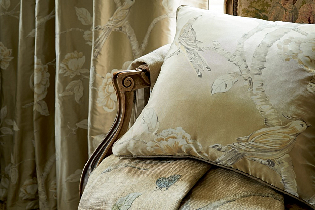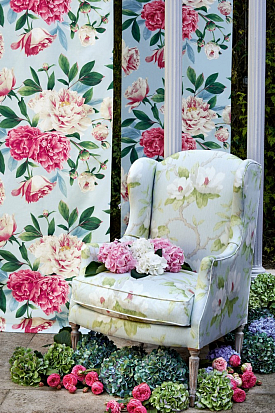 В коллекции представлены лен, шелк и хлопок с набивными рисунками и вышивками и элегантно сочетающиеся с ними обои-компаньоны с узорами, созданными с помощью трафаретной печати и методом гравировки. Благодаря использованию различных техник нанесения рисунка на ткани - от акварельной, используемой художниками сотни лет, до современной цифровой, позволяющей достичь максимальной детализации, дизайнеры объединили популярные в XVIII и XIX веках классические узоры и современные геометрические орнаменты и создали изысканную романтичную коллекцию. Цветущие пионы, магнолии, вьющийся жасмин, порхающие бабочки и птицы на портьерах, обоях или обивке мягкой мебели передадут неповторимую красоту и свежесть весеннего сада в интерьере городских апартаментов или загородного дома. Все образцы этой коллекции уже представлены в салоне Deluxe Home Creation.
