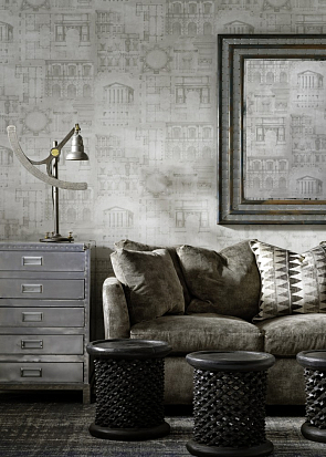 В этот раз предметом вдохновения для основателя и главного дизайнера знаменитого британского бренда Andrew Martin Мартина Уоллера стало самое таинственное место в каждом доме - чердак. Старые детские игрушки и когда-то необходимые и важные вещи, незаслуженно забытые на пыльных покрытых паутиной полках – все это мы так или иначе бережно храним в доме под замком, как и в дальних уголках нашей памяти. Выполненные на бумаге с помощью ручной печати цветные и монохромные рисунки ведер с кистями и банок с красками на чердачных полках, ящики с проволочными корзинами для хранения различных мелочей, старинные чертежи памятников римской и греческой архитектуры XVI века и военная геральдика времен англо-бурской войны вызывают ассоциацию с окутанной тайной помещением, хранящим секреты и семейные реликвии. В дополнение к обоям Andrew Martin в этом году выпустил новый каталог обивочных тканей с яркими бархатными принтами, цветочными и геометрическими рисунками и аппликациями.