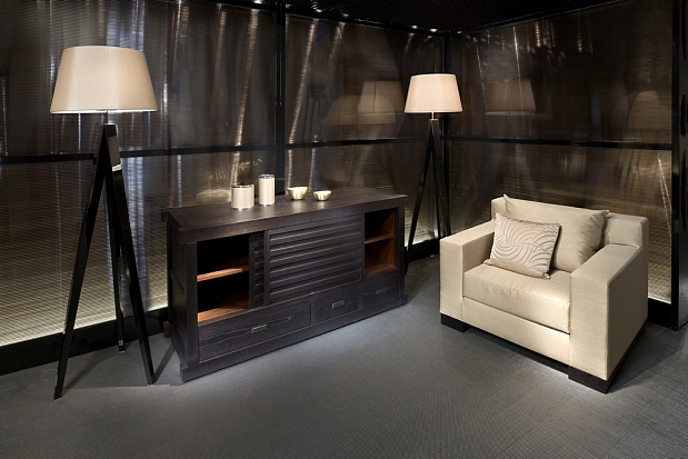 Естественность и красота интерьеров шоу-рума на Каменноостровском, 24 заключена в реальности обстановки и возможности почувствовать, буквально потрогать, каждый объект, понаблюдать за тем, как предметы сочетаются, «живут» друг рядом с другом в естественной среде. Был воссоздан интерьер реальной квартиры, в которой легко представить проживающим не только “отца итальянской моды”, но и самого себя.