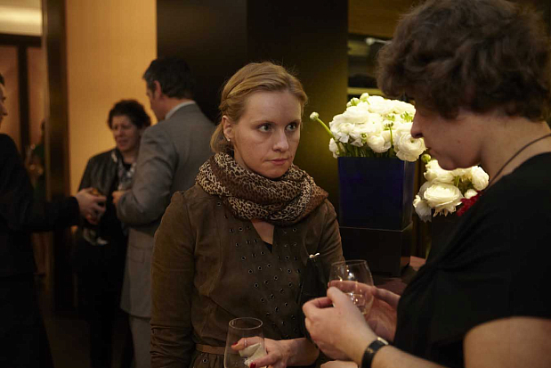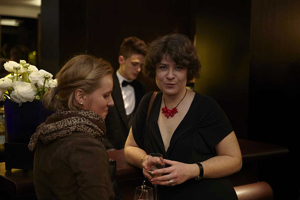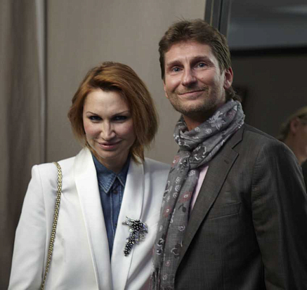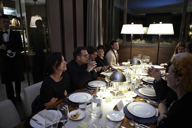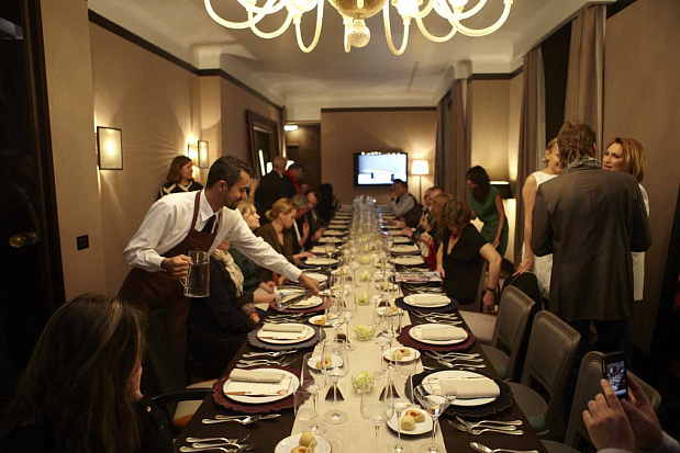 В вечер ужина шоу-рум преобразился в элегантную гостиную: сервировка столов в сиренево-синей гамме, приглушенный свет, неумолкающие разговоры, изысканные деликатесы и сам гостеприимный хозяин - дизайнер Ромео Соцци.