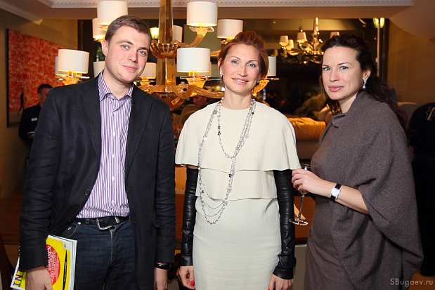 Директор по экспорту Loro Piana Interiors господин Luca Zani, Кирилл Никитенко и директор шоу-рума Donghia Екатерина Сивер устроили для гостей розыгрыш призов – роскошного пледа Loro Piana и одной из фотографий, представленных на выставке.