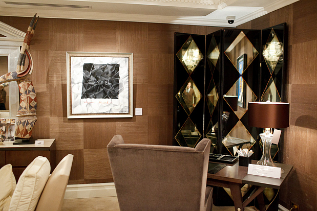 Предметы, входящие в состав коллекций, идеально вписываются в любое пространство – традиционное, современное или эклектичное. Именно поэтому работы Владимира Мацкявичуса легко дополнили интерьер шоу-рума, не нарушив гармонии представленных дизайнов. Так же и сами предметы Donghia позволили работам художника играть одновременно и самостоятельную роль в интерьере и органично сочетаться с ним, создавая единую атмосферу.