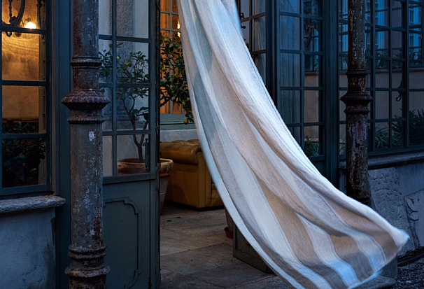 Воздушные муслины, элегантные жаккарды и льняные ткани с вышивками из новой коллекции Windrose напоминают свежий морской бриз. Доминирующие оттенки этого года - молочный, серо-бежевый и, конечно, индиго и аквамарин – символы моря. Основной акцент в коллекции сделан на легкости и воздушности нового текстиля. Для портьер дизайнеры предложили изящный вышитый лен и воздухопроницаемый невесомый тюль из кашемира, шерсти и шелка. Дополняют коллекцию ткани для подушек, обивки мягкой мебели и пошива портьер изо льна и шелка с полосатым дизайном.