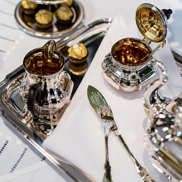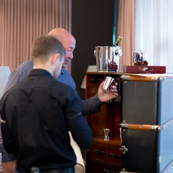 В рамках мероприятия «Серебряный коктейль» был представлен и новый барный комод от Robbe & Berking, выполненный в стиле Louis Vuitton и посвященный первым дорожным сундукам легендарного модного Дома. В завершении вечера гости приняли участие в лотерее и двое победителей в этом году отправятся в путешествие во Фленсбург на серебряную мануфактуру.