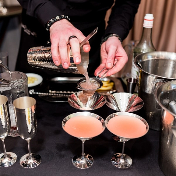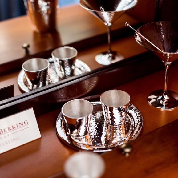 В интерьерном салоне Deluxe Home Creation состоялась грандиозная презентация новой барной коллекции Martele немецкой серебряной мануфактуры Robbe&Berking. Гости вечера — друзья салона Deluxe Home Creation и клиенты бренда Robbe&Berking, познакомились с историей серебра в интерьере и попробовали исключительные коктейли из серебряных бокалов от лучших барменов Москвы. Анжелика Суворова, представитель Robbe&Berking в России, рассказала, а бармены виртуозно показали, что делать с серебряными шейкерами, стрейнерами, джиггерами и другими хитрыми принадлежностями.