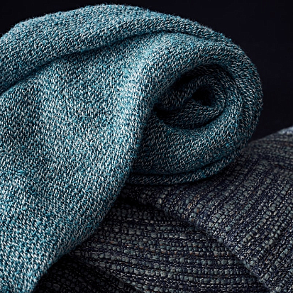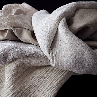 Буклированная текстура льна SEAHORSE напоминает морскую пену, а цветовая гамма вызывает ассоциации с морем. Он легкий и упругий, поэтому прекрасно драпируется.