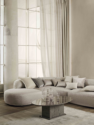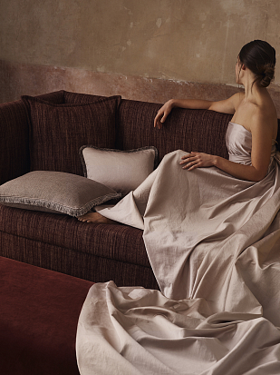 Лён OLD HOLLYWOOD передаёт сущность олдскульного голливудского гламура. Вдохновлённый отблесками свечей на стекле, он имеет мягкий, роскошный блеск с лицевой стороны и нежную на ощупь, напоминающую кожу ладони, поверхность изнанки. Отлично подходит для штор без подкладки и для лёгкой обивки.