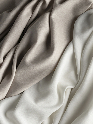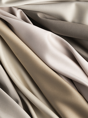 Ткань двойной ширины с тонким ненаправленным рисунком красиво драпируется. Светлая основа гармонирует с полированными металлическими нитями трёх оттенков, которые добавляют немного гламура в любой интерьер.