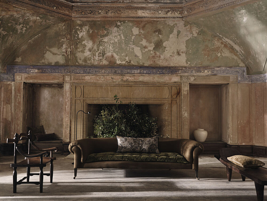 HEIRLOOM — нежная ткань из тончайшего льна и хлопка, очень приятная на ощупь и красиво драпирующаяся. Орнамент пэйсли характерной каплевидной формы был почерпнут из архива de Le Cuona. Цвета смягчены, а оттенки тщательно подобраны, чтобы придать ткани вид старинной и выцветшей на солнце. Оборотная сторона ткани Heirloom обладает более свежей и нейтральной палитрой.