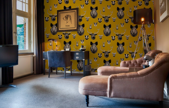 Обои Graduate Collection — результат работы группы молодых британских художников и дизайнеров. Созданный ими невероятный калейдоскоп рисунков, их в коллекции 40, включает совершенно разные стили и направления. Но все они демонстрируют любовь к классической и современной британской культуре. Скачки и охот на лис, английские бульдоги, викторианские модницы, шпалерная развеска семейных портретов с изображением собак, лис, кабанов вместо людей, сюжеты будней современного Лондона и многое другое — англофилам есть из чего выбрать. Добавляют яркости в Graduate Collection — сочные тропические рисунки. Экзотические птицы и животные — какаду, туканы, тигры и леопарды, прекрасно впишутся в яркие современные английские интерьеры. Всю коллекция можно посмотреть у нас на Б. Грузинской, 42.
